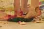 | Chloe has agreed to babysit for her friend Violet because she had to work a double shift. She invites Dahvia and Mary Jane over to Violet’s house to keep her company, and she then finds out that they actually saw that lying bitch Violet all dressed up and ready to go out! The ladies decide to exact a little revenge by trashing Violets house. They are all wearing sexy mini dresses, and remove their high heels to start the fun. They dump out the trash and toss around her clothes and shoes. Then they decide to move on to the kitchen to see what kind of other messes they can make. They pull out an array of snacks and kick up their dirty bare feet on the kitchen furniture to eat. They then decide that to create a bigger mess they will start throwing eggs, macaroni salad and meats and cheeses all over the floor. Soon they are getting the food all over their bare feet and even licking some of it off!! They are getting their stomp on and are stepping and smushing food all over the kitchen. Even the frozen dinners and hot dogs are not safe! The slipping and the smashing goes on and on, with the hot dogs getting stuck between their dirty sexy toes. They don’t stop until the cabinets are bare. Oh no!! Not the donuts, cake and pie too!!! And for the final slap in the face to Violet, the girls clean their dirty feet by using Violet’s pantyhose to clean between their sticky toes. I bet Violet learned her lesson. 45 min. |
