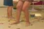Chloe has agreed to babysit for her friend Violet because she had to work a double shift. She invites Dahvia and Mary Jane over to Violet’s house to keep her company, and she then finds out that they actually saw that lying bitch Violet all dressed up and ready to go out! The ladies decide to exact a little revenge by trashing Violets house. They are all wearing sexy mini dresses, and remove their high heels to start the fun. They dump out the trash and toss around her clothes and shoes. Then they decide to move on to the kitchen to see what kind of other messes they can make. They pull out an array of snacks and kick up their dirty bare feet on the kitchen furniture to eat. They then decide that to create a bigger mess they will start throwing eggs, macaroni salad and meats and cheeses all over the floor. Soon they are getting the food all over their bare feet and even licking some of it off!! They are getting their stomp on and are stepping and smushing food all over the kitchen. Even the frozen dinners and hot dogs are not safe! The slipping and the smashing goes on and on, with the hot dogs getting stuck between their dirty sexy toes. They don’t stop until the cabinets are bare. Oh no!! Not the donuts, cake and pie too!!! And for the final slap in the face to Violet, the girls clean their dirty feet by using Violet’s pantyhose to clean between their sticky toes. I bet Violet learned her lesson. 45 min. |